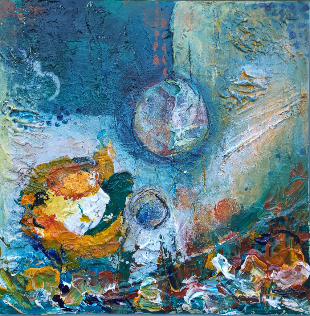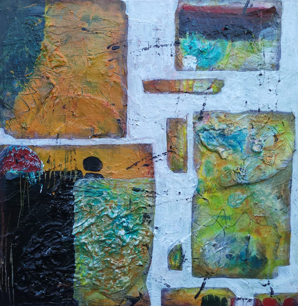 Nach ihrer zweiten Hirn-OP hat Monia zu ihrer eigenen Verblüffung angefangen zu malen. Einfach so, nur für sich, zur Begleitung und Dokumentation ihres Heilprozesses. Zu ihrer Überraschung haben Menschen ihre Themen im Umgang mit Krankheit darin wiedergefunden, und so senden wir ihre Bilder nun als Ausstellung „Bilder einer Heilung“ in die Welt. Solltet ihr dem Thema Heilung / Krankheit z.B. im Rahmen eurer Veranstaltungen einen bildhaften, reflexiven Rahmen geben wollen, nimmt Monia gerne die Bilder von den Wänden ihres Hauses.